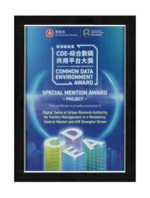 The HKIS QS Award is the first of its kind organised by the Quantity Surveying Division of the Hong Kong Institute of Surveyors. Central Market was awarded for Award (Innovation) to recognise the project team who has created innovative or digitalised tools and workflows in contract and financial management and applied them effectively in projects to create value.