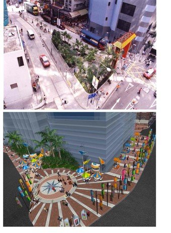 - re-designing a nearby MTR structure and a tram station into streetscape features.