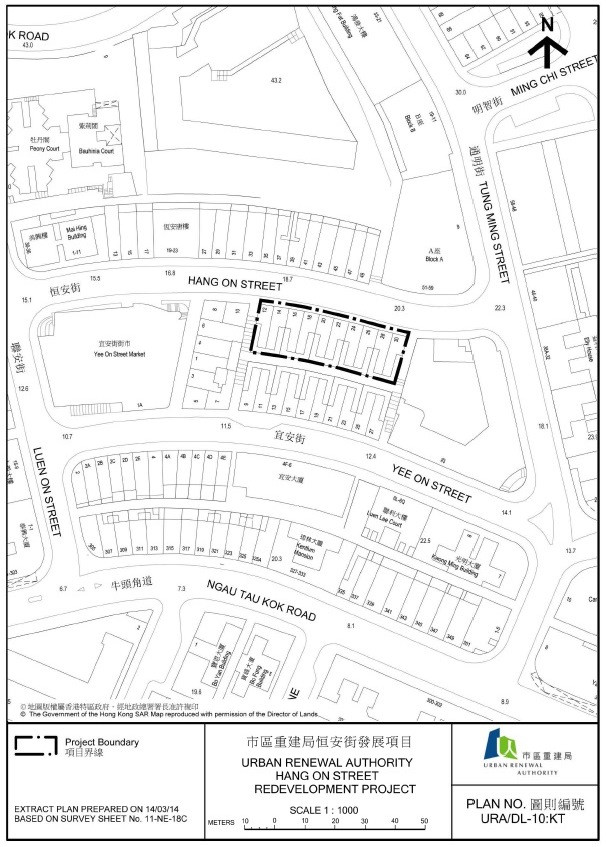 The Urban Renewal Authority (URA) today (Friday) announced the commencement of the third demand-led redevelopment project under the third round of the pilot scheme at Nos. 12-30 Hang On Street (even number) in Kwun Tong. It is also the tenth demand-led project commenced by the URA since the introduction of the demand-led pilot scheme in 2011.