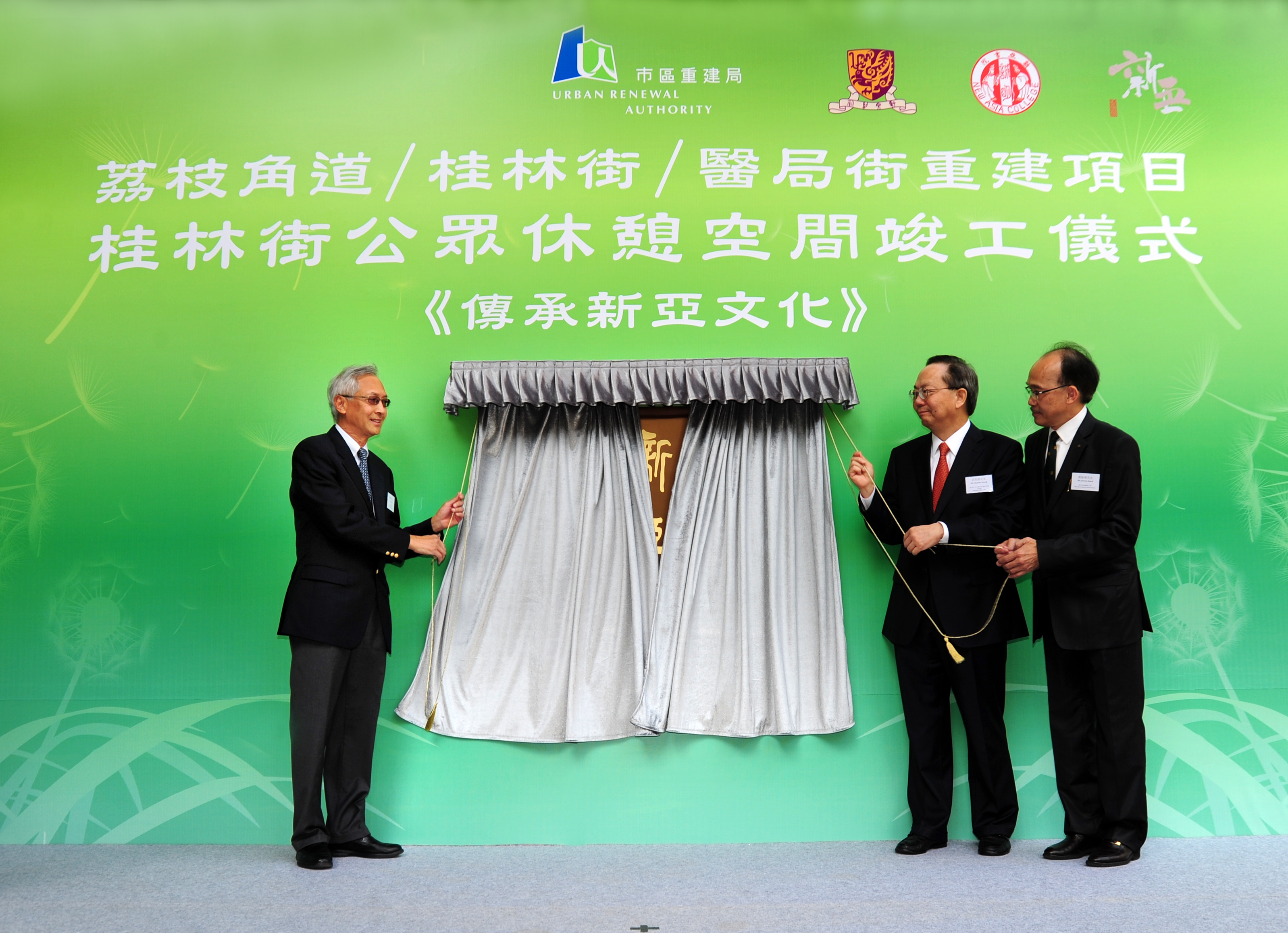 Speaking at the completion ceremony today (Friday), Chairman of the URA, Mr Victor So Hing-woh, said this redevelopment project has not only improved the living environment of affected residents, but also brought to the district a beautifully-landscaped and themed landmark, allowing the public to appreciate the unique spirits of NAC.