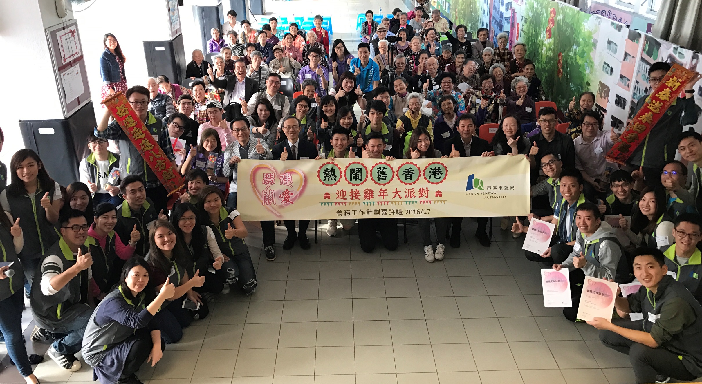 The Urban Renewal Authority (URA) has partnered with 10 tertiary institutions and social service organisations under the Community Service Partnership Scheme (CSPS) in this 2016/17 academic year to organise various programmes to serve the residents in the old districts. An Old Hong Kong-themed party was especially held today (Saturday) for about 80 elderly residents in Kowloon City/To Kwa Wan, including those affected by the URA redevelopment projects, to celebrate the approach of the Year of the Rooster.