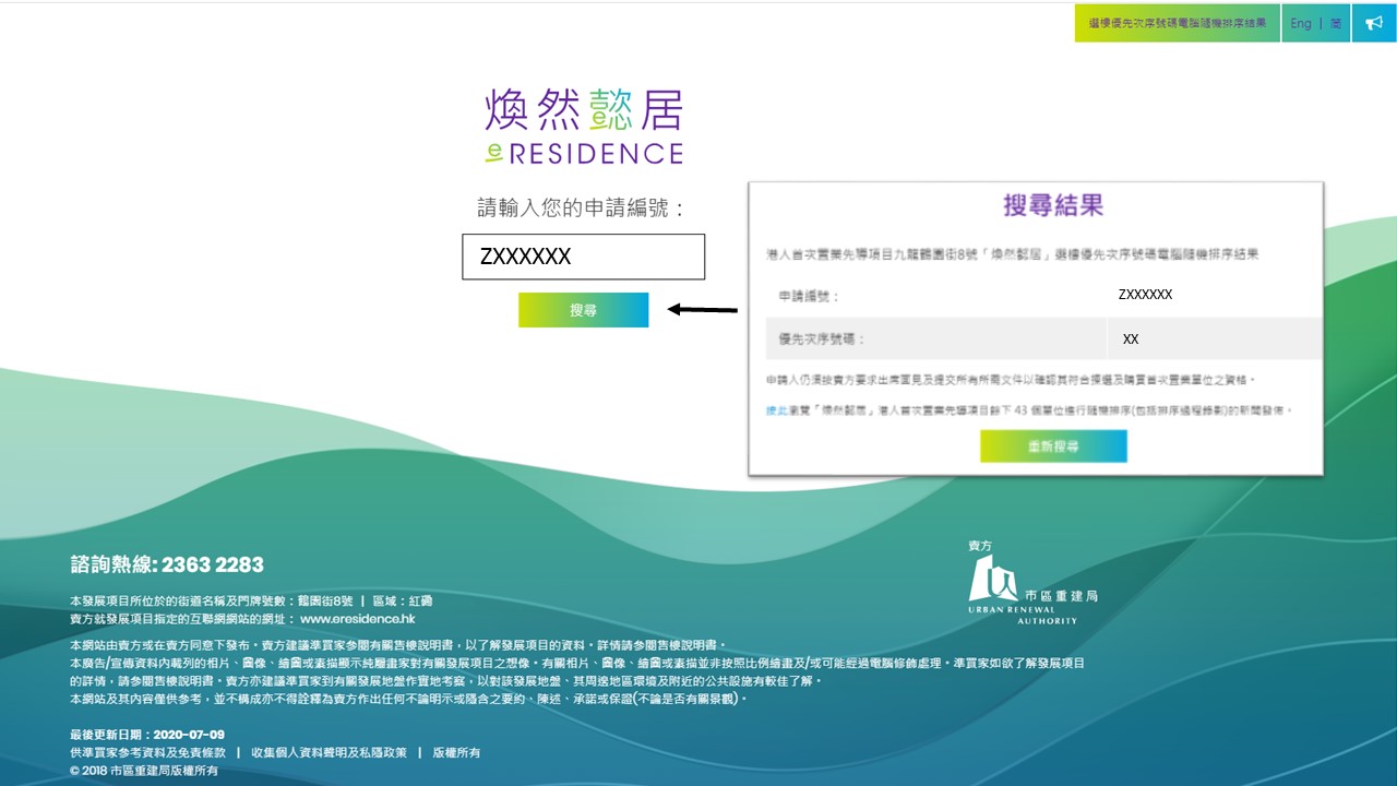 Upon completion of the random assignment, the list of assigned priority numbers and the video will be uploaded to the eResidence’s website (www.eresidence.hk) later on the same day. Applicants can check their assigned priority numbers through the search function from the website by entering their application numbers. The URA will also issue letters to all applicants notifying them of their assigned priority numbers within three working days.
