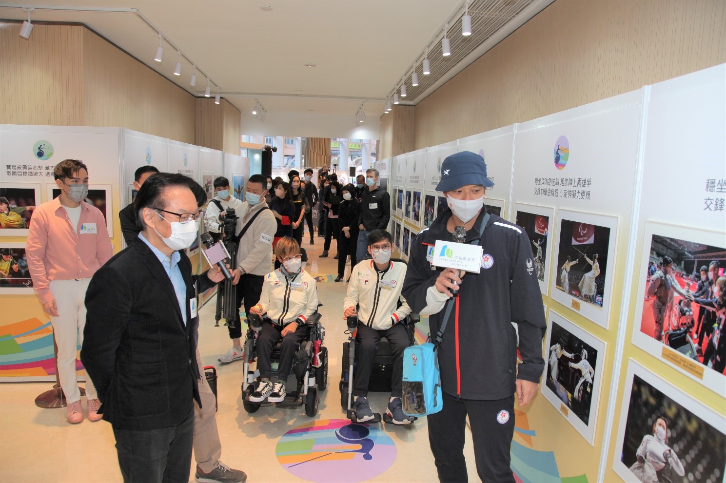 The Exhibition features more than 100 photos from the Games, as well as three Paralympic torches, a cauldron and 15 medals from Paralympic medallists. To foster social inclusion, the exhibits also include several interactive tactile art pieces created from photographs taken at the Paralympic Games. At a sharing session, the official photographers of the Hong Kong Delegation at the Tokyo 2020 Paralympic Games, Chan Cheung-ho and Ng Cheuk-kai, talked about their photography experience and recounted the memorable and interesting stories behind each photo.