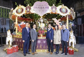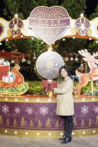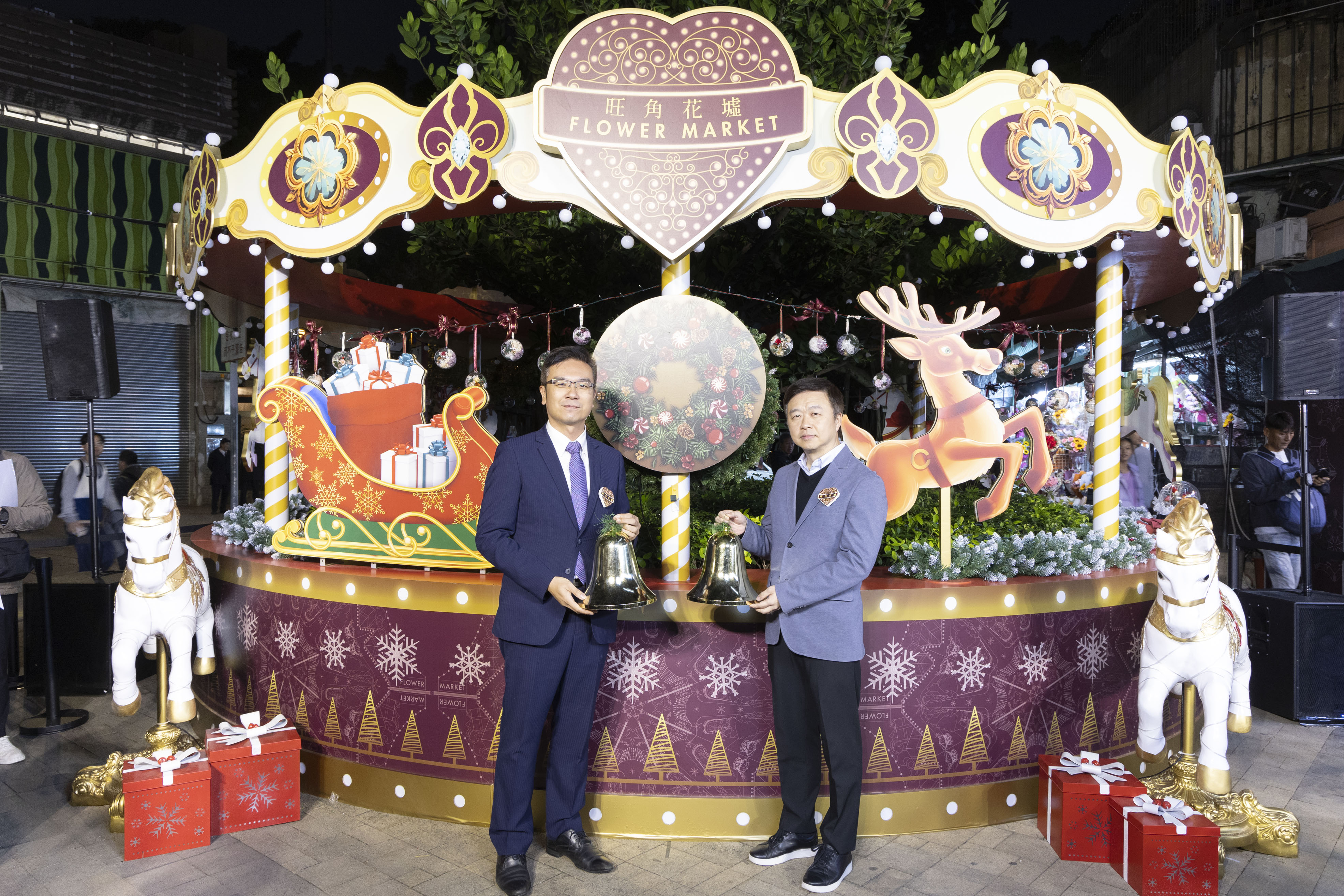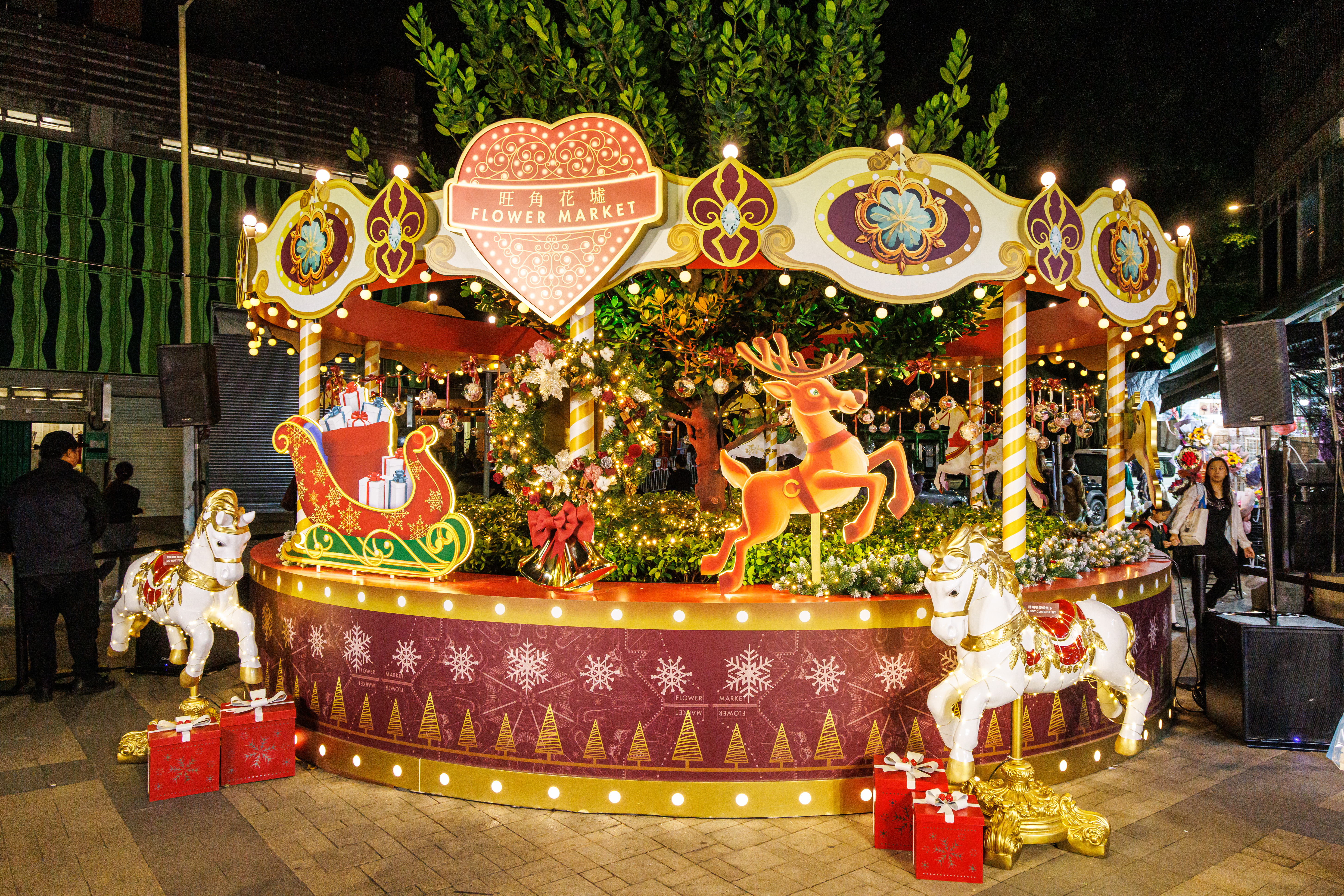 The URA’s Flower Market Christmas Festive Event runs from today until 5 January 2025. The URA and the Yau Tsim Mong District Office have jointly adorned the Flower Market with festive decorations, including dazzling lights on sections of Sai Yee Street and Flower Market Road and a large carousel-themed Christmas installation set up in the pedestrian space at the intersection of Sai Yee Street and Flower Market Road. Snowflake images will also be projected onto the base of the Prince Edward Road West Flyover. These distinctive decorations create excellent photo spots for locals and tourists.