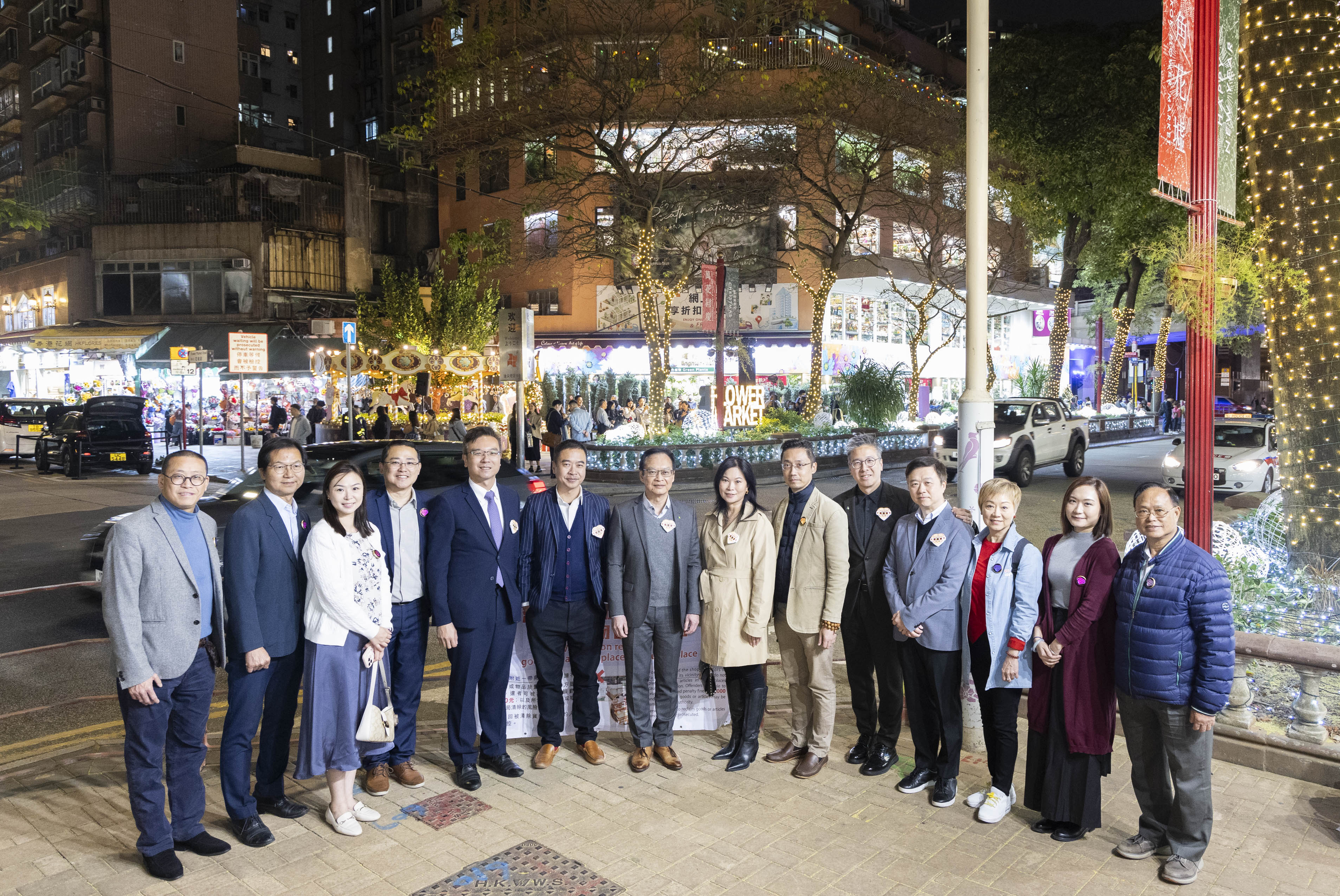 The ceremony was officiated by District Officer (Yau Tsim Mong) Mr Edward Yu, URA Managing Director Ir Wai Chi-sing, URA Non-Executive Director Ir Janice Lai, Chairman of the Yau Tsim Mong North Area Committee Mr Daniel Au, and representative from the Hong Kong Wholesale Florist Association Mr Terence Ma, signifying the commencement of the festive celebration at the Flower Market.