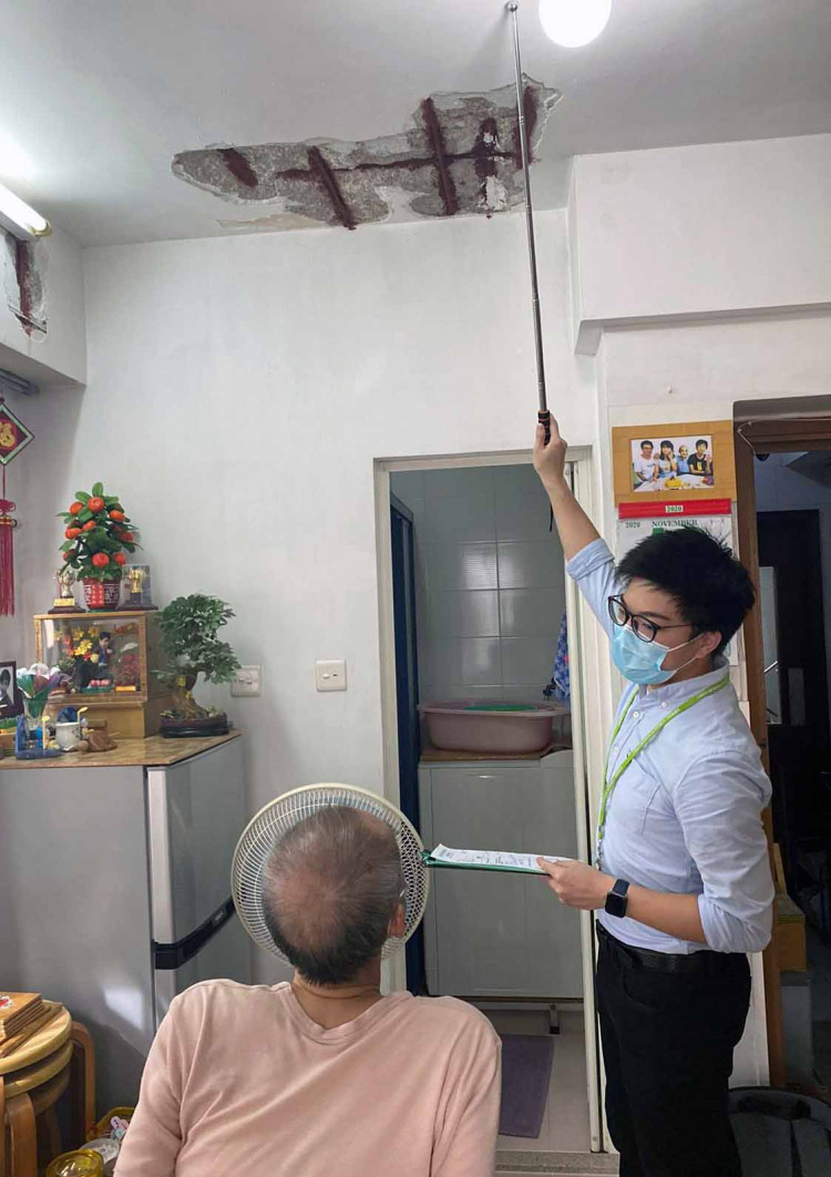 除了协助长者交齐申请所需文件外,市建 局亦会派员上门视察,为长者提供楼宇维修的专业意见。