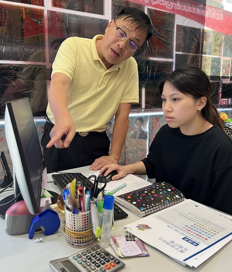 许德亮(左)指,关於大厦维修的资助计划繁多,以往需要花大量时间向议员办事处的员工解释不同计划内容,以便回答街坊的问题。