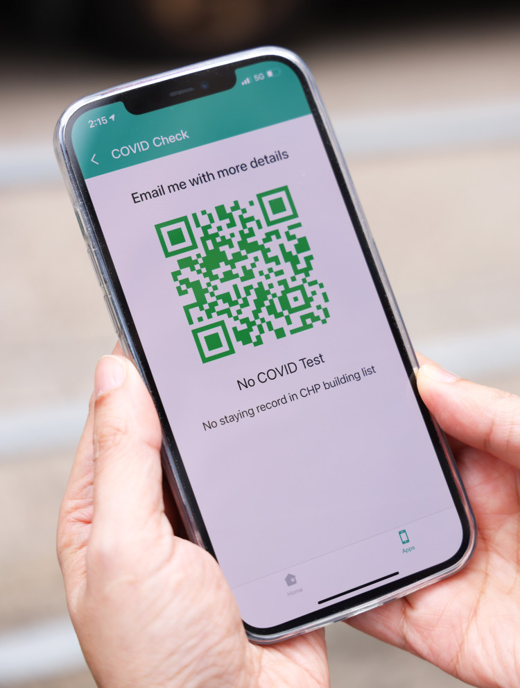 「健康码」应用程式,让市建局职员可向居民展示新冠 肺炎的检测结果。