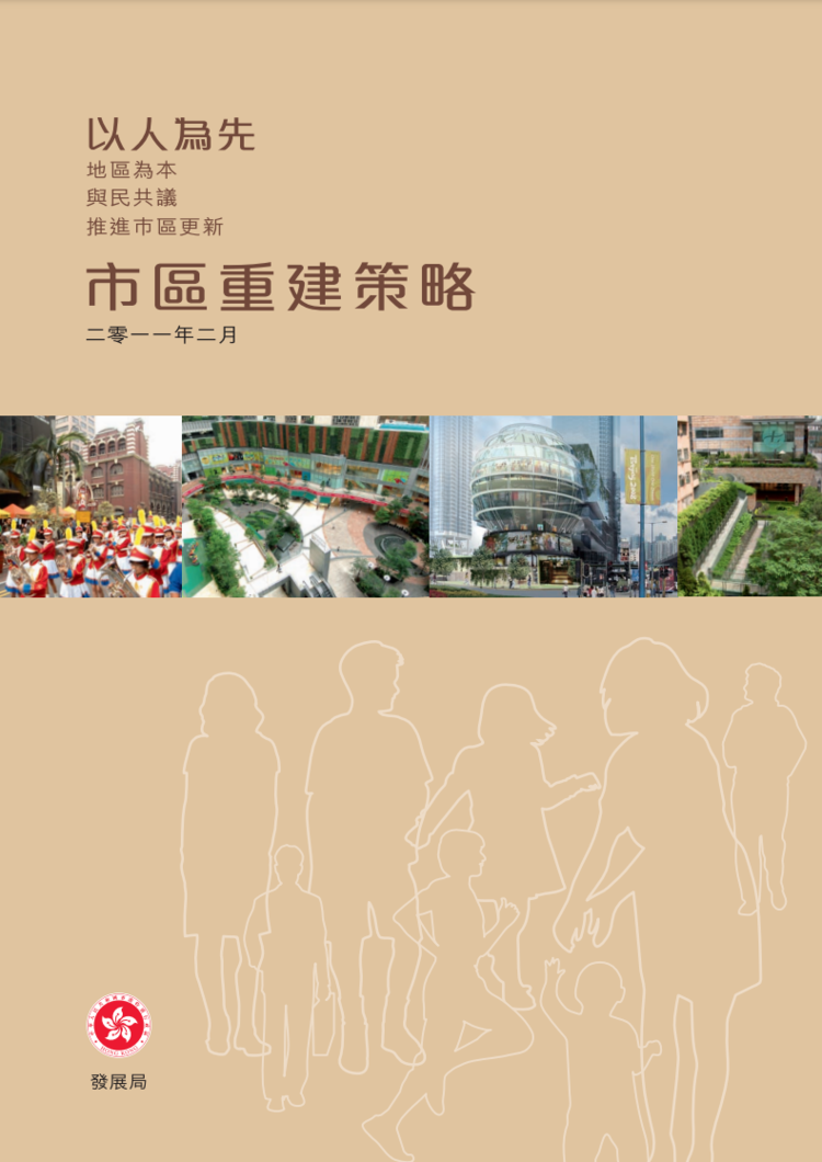 《市区重建策略》是政府的政策,由市建局及其他持份者负责执行。政府於2011年2月24日公布新修订的《市区重建策略》,当中已将进行了为期两年的公众参与活动后所凝聚的主要共识纳入策略内。
