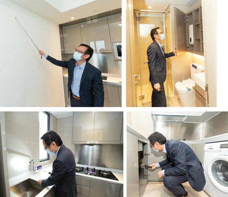 韦志成前往焕然懿居参观示范单位,视察单位的内部情况,并检查厕所和厨房的设施。
