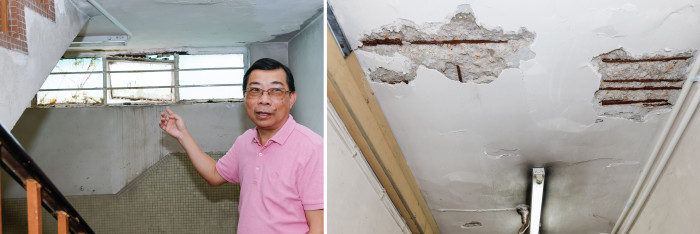 方先生称,大厦部分公用地方的天花和墙身石屎剥落和钢筋外露,早年已收到政府的强制验楼命令及消防安全指示,即将做大维修,相信物管公司能发挥协助业主的职能。