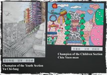 儿童组的冠军为十一岁的招婉雯,她说由於香港的空气汚染严重,故此她心目中的理想居住环境是一个环保城市。作品中的天使代表着重建及更新旧区的市区重建局;色彩缤纷的轻汽球则代替传统的交通工具。