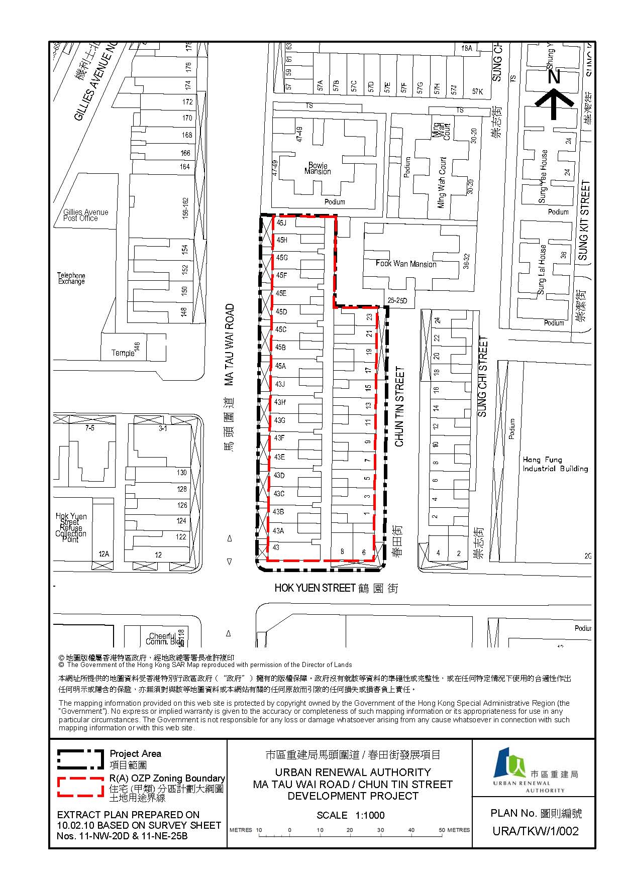 根据《市区重建局条例》第23(3)条的规定,项目的土地界线图则及一般资料,会由今日起之後的两个月内,存放於下列地点供市民於办公时间内查阅: