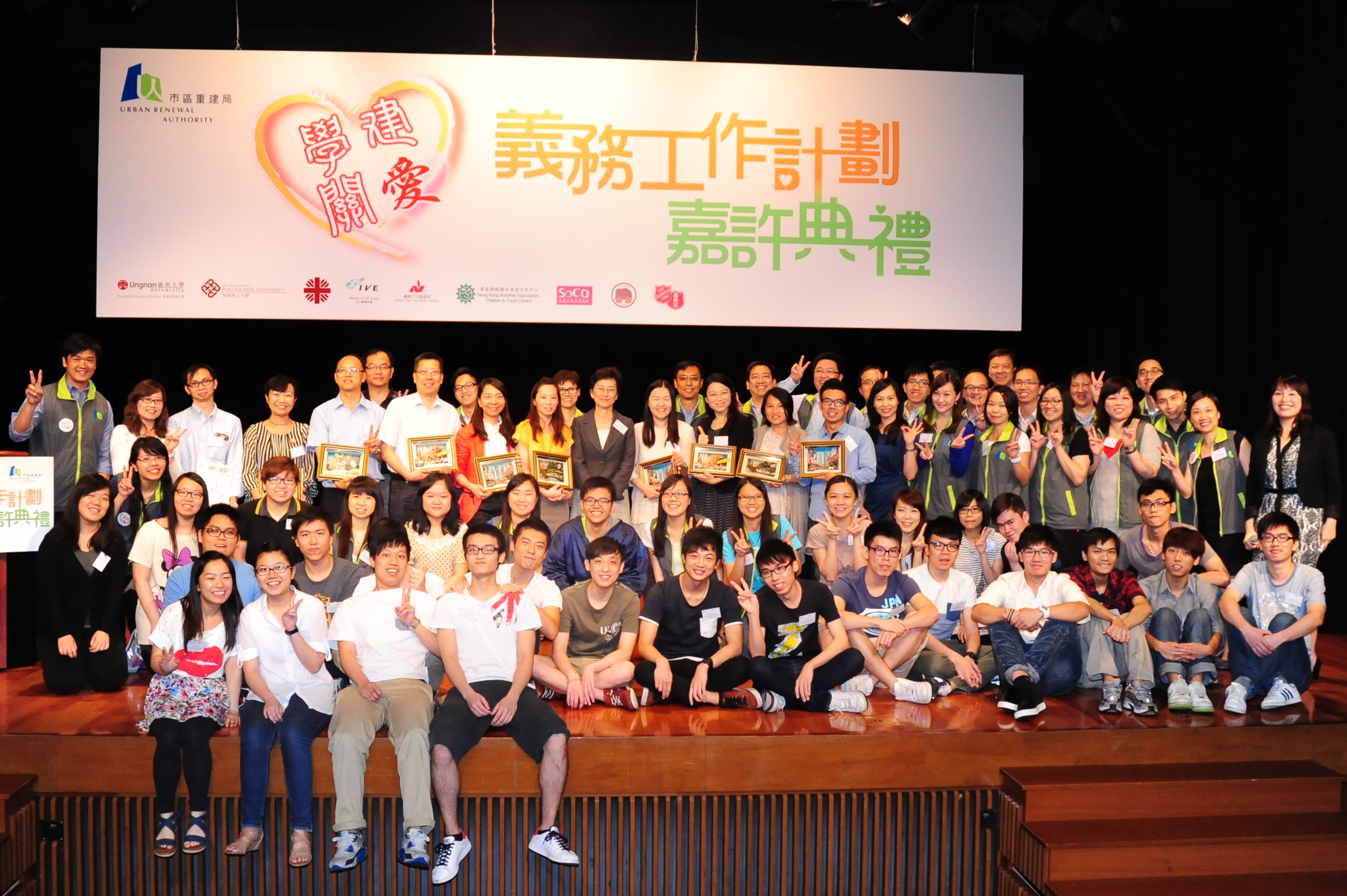 市区重建局(市建局)今日(星期五)嘉许逾150名大学及大专院校的学生、非政府机构和市建局的义工,表扬他们在2012/2013学年向旧区居民表达关爱,用心服务他们。