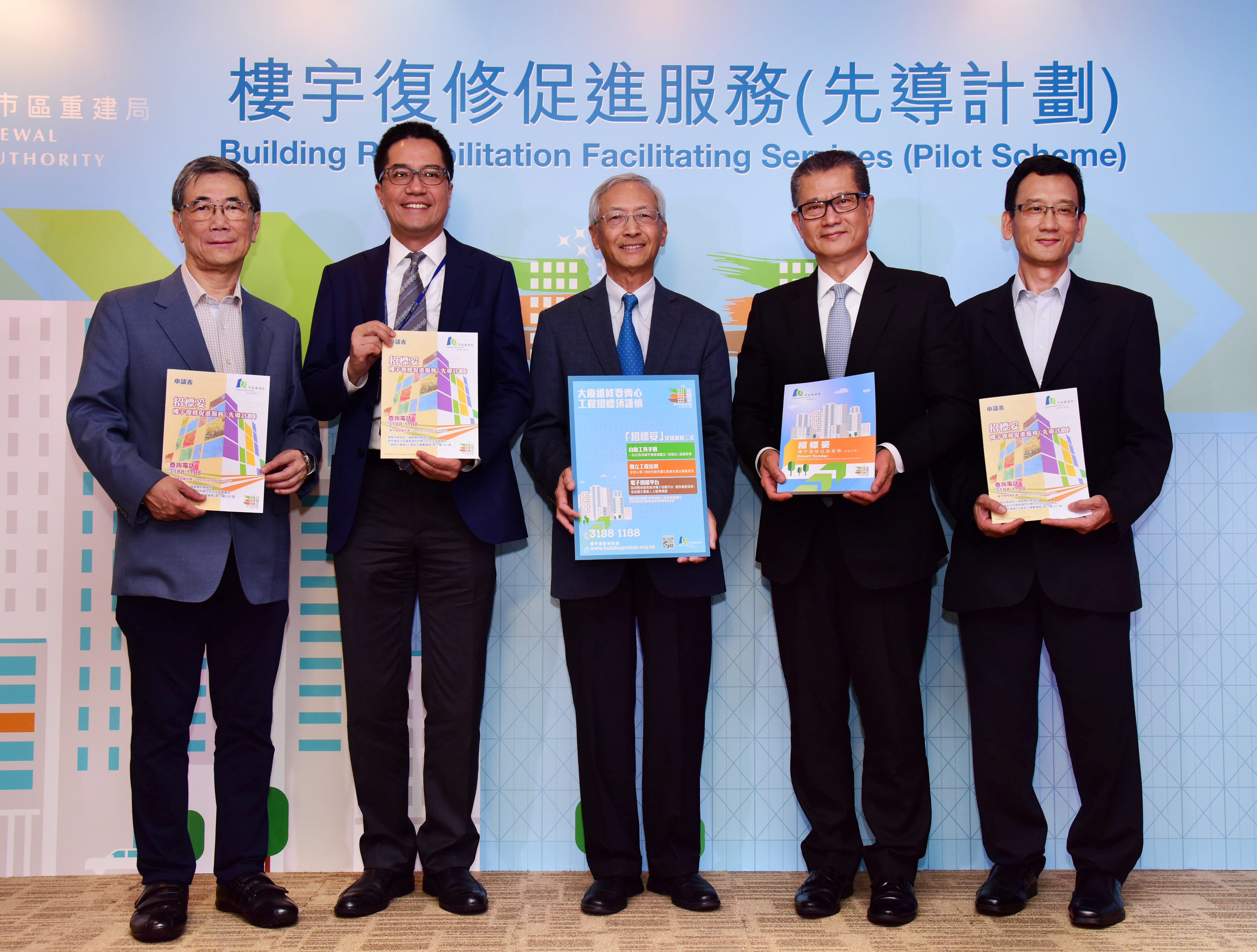 发展局局长陈茂波与市建局主席苏庆和一同主持「招标妥」楼宇复修促进服务(先导计划)的启动仪式。
