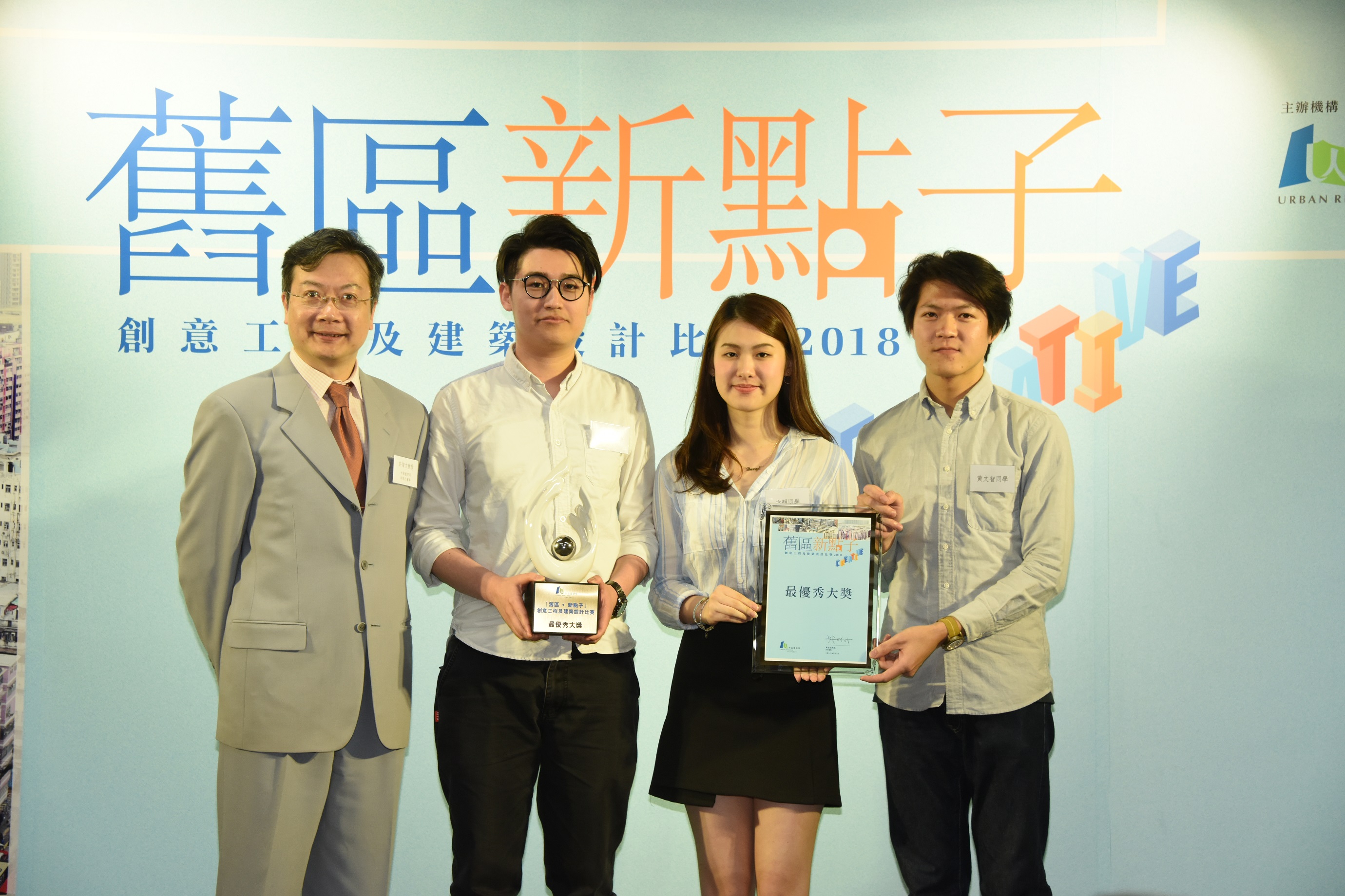 就读IVE建筑设计及科技学二年级的方静、黄文智和钟键濠同学,凭着作品「 DOME山再起」夺得比赛的「最优秀大奖」及「最具创意奖」。同学们了解到旧区缺乏空间让长者舒展身心,因此构思在旧楼天台装置圆拱形的户外休憩设施,以提升长者生活质素。该队代表方静同学在颁奖礼后表示:「这次比赛对年轻人的新点子给予了肯定,过程中最大的得着是深入了解旧区长者的需要,并运用创意设计去改善旧区居住环境,以及表达关怀小区的讯息。」