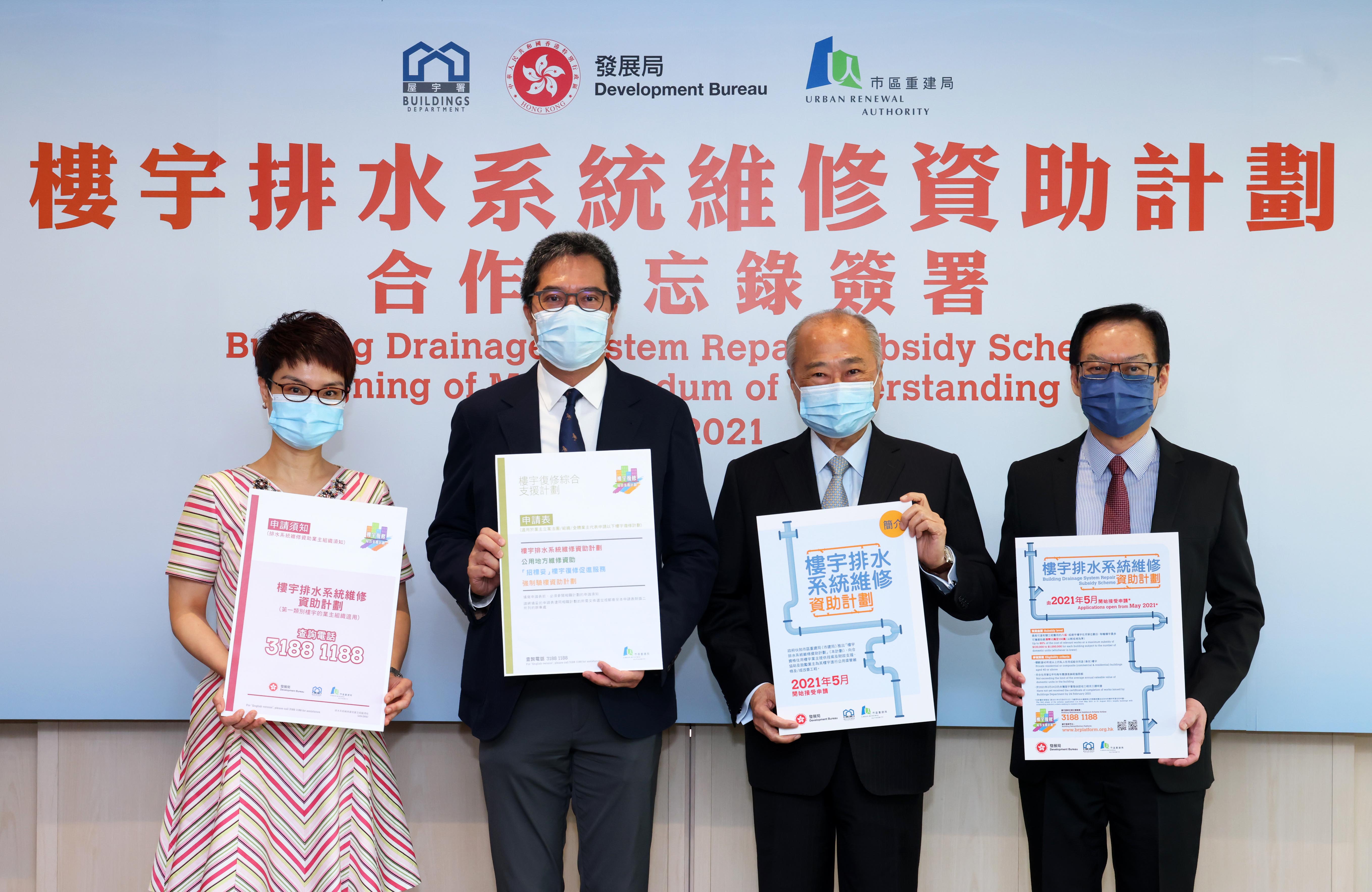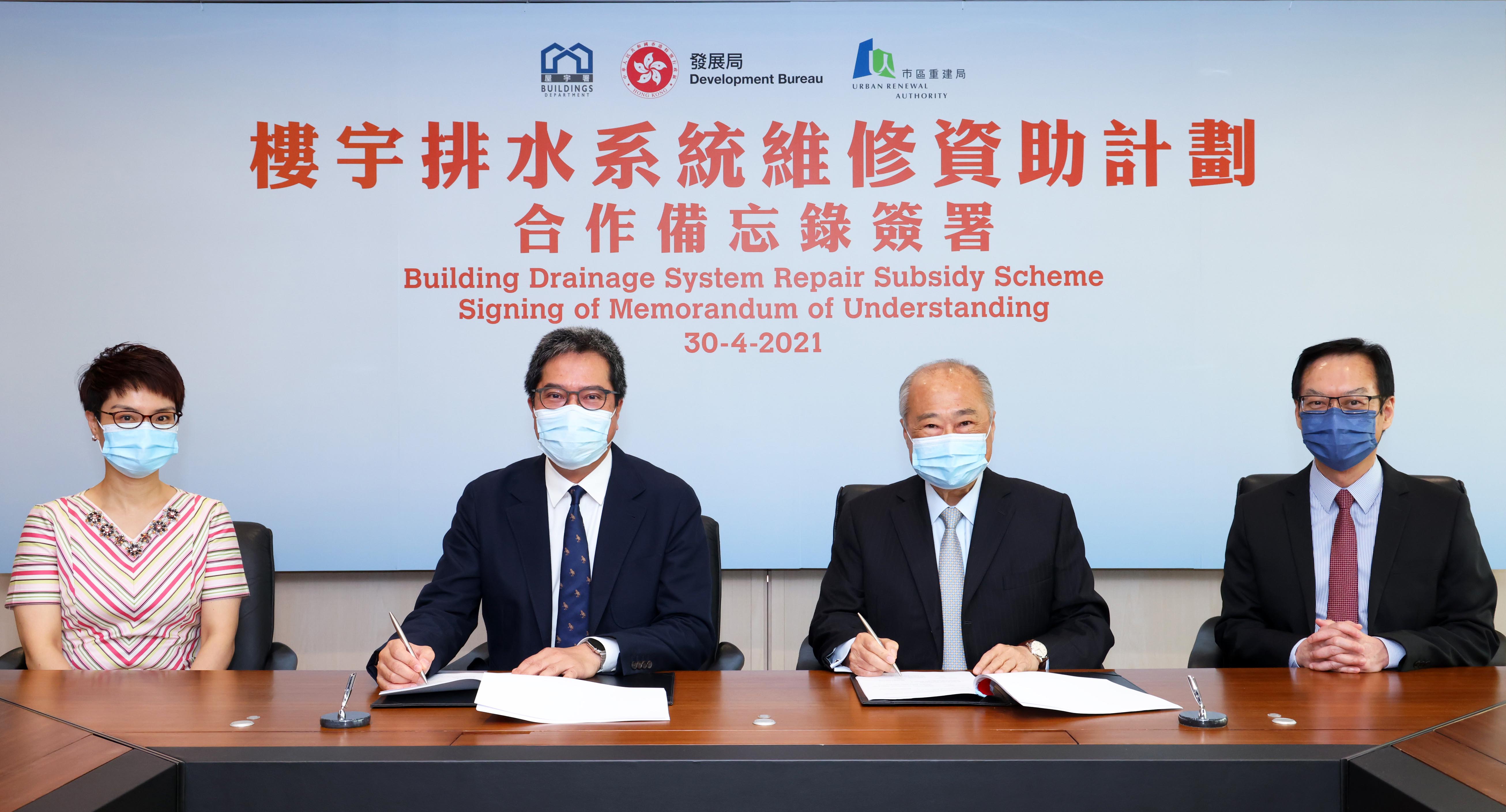 《2021年拨款条例草案》早前于立法会通过,当中涉及十亿元的拨款,将用以推展有关资助计划。就此,市建局与发展局今天签订合作备忘录,以落实执行资助计划的框架。