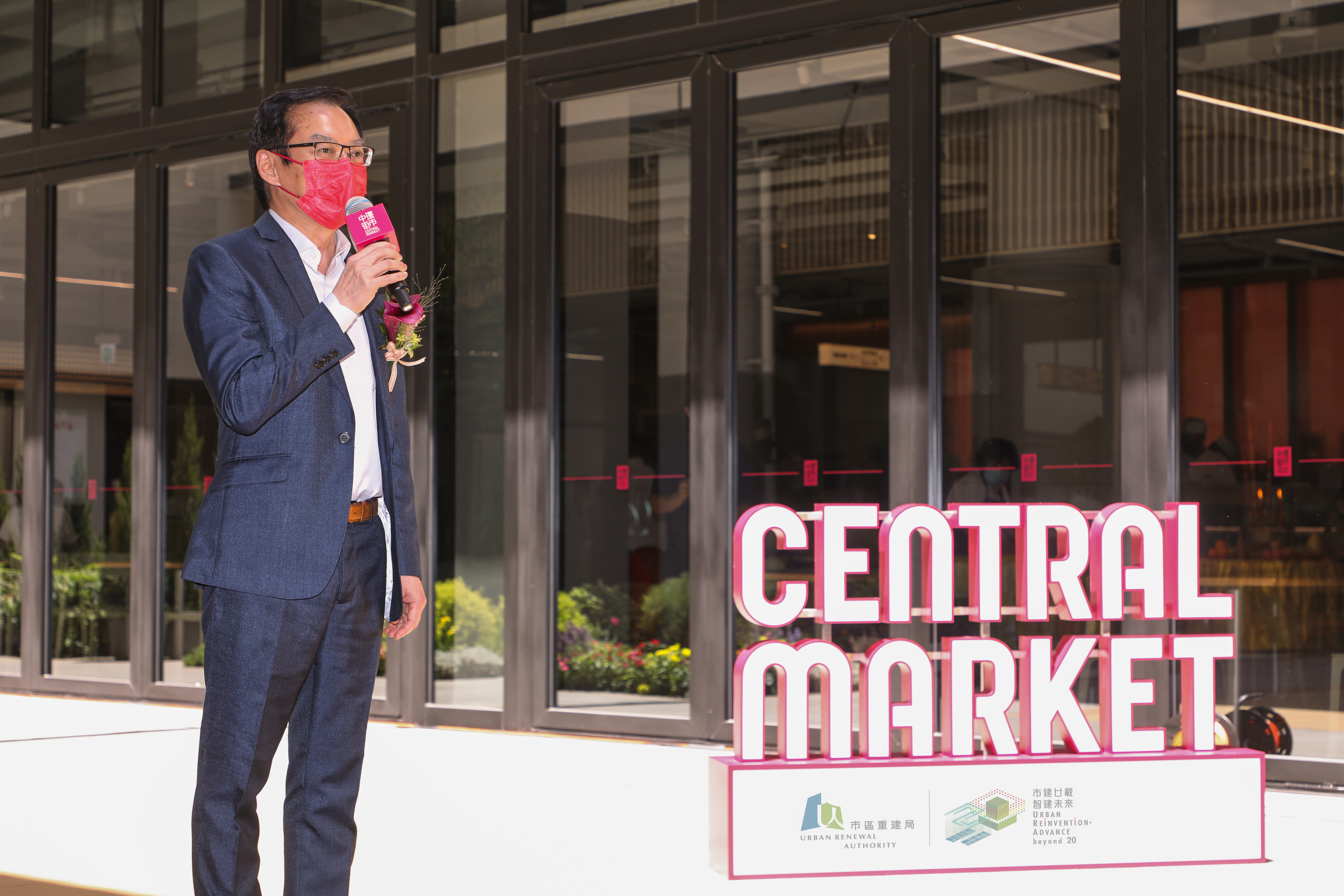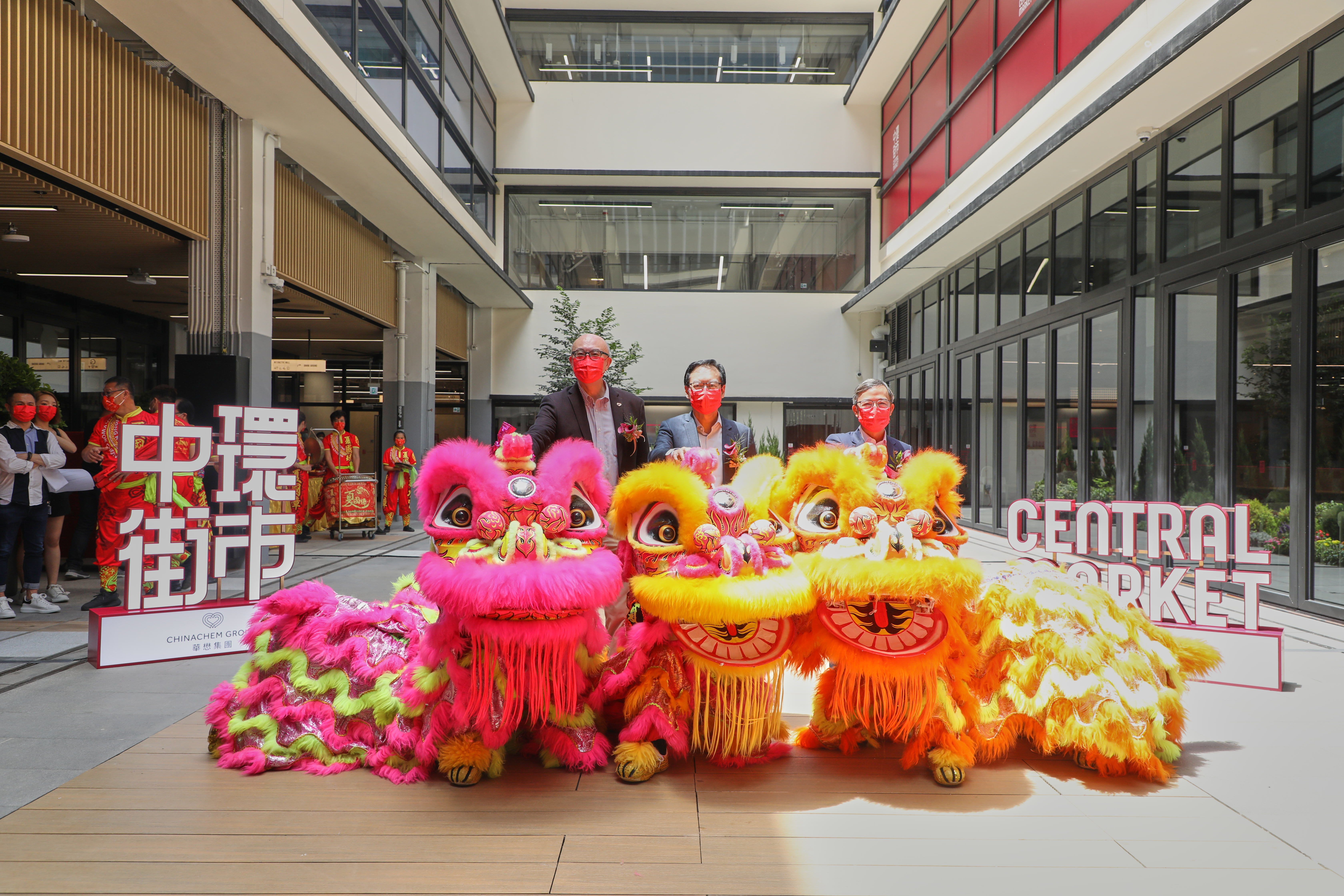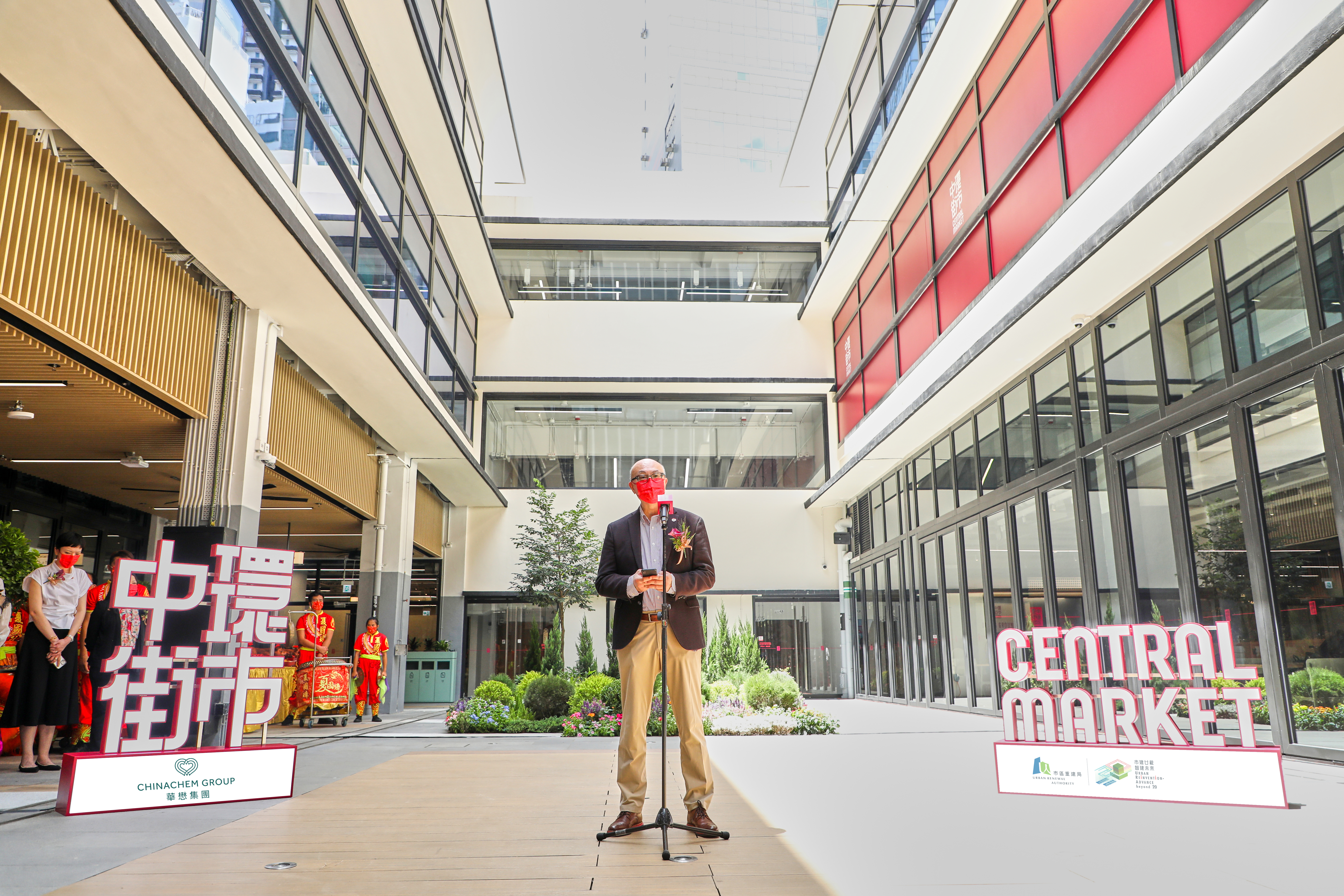 市建局和华懋集团今日在中环街市举行其试业典礼,由市建局行政总监韦志成、华懋集团执行董事兼行政总裁蔡宏兴,以及华懋集团地产业务董事总经理区庆麟主持。