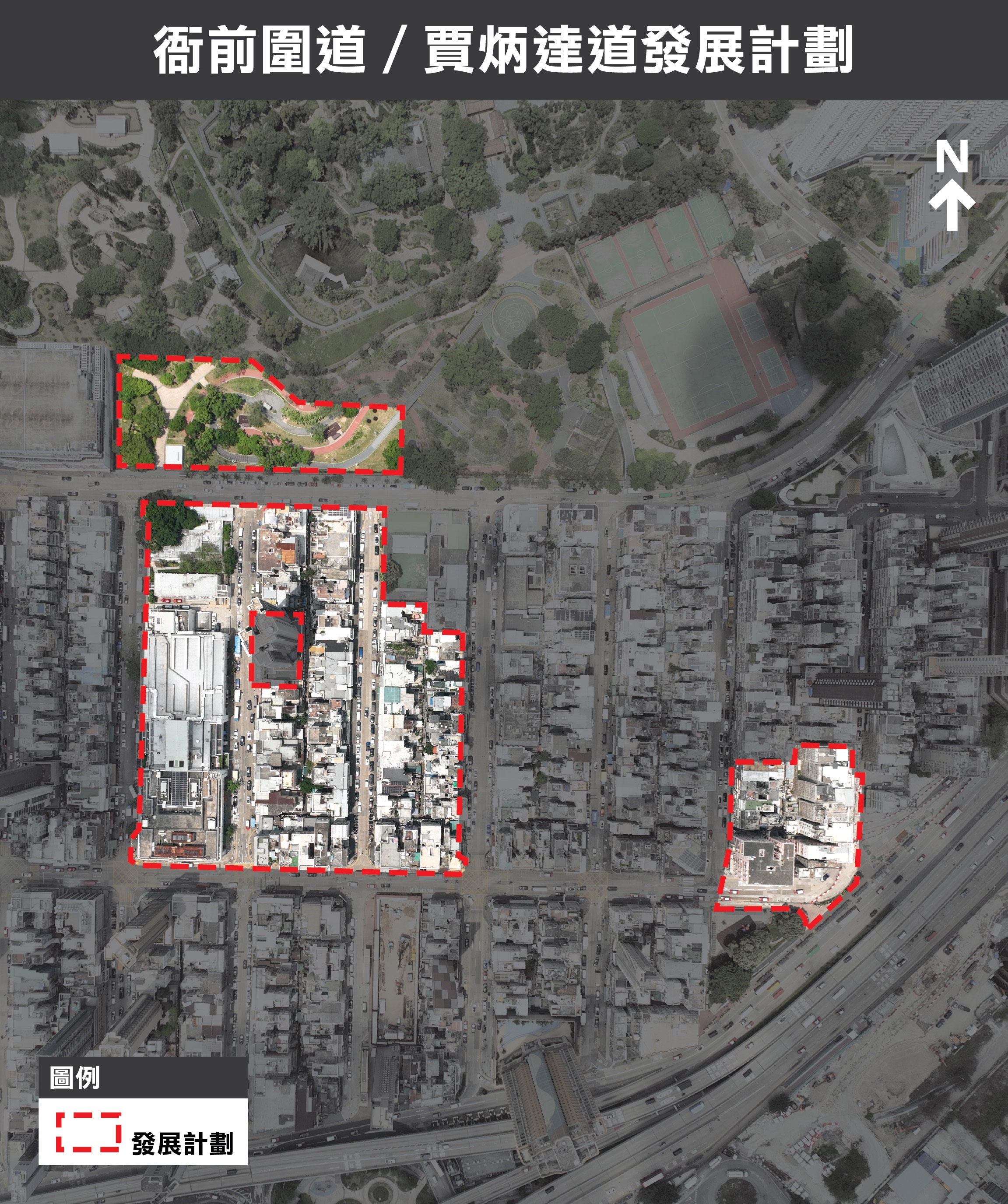 KC-017计划将重新规划三个地盘的土地用途,其中北面地盘内的贾炳达道公园部份土地,将配合政府易地重置九龙城街市及毗邻社区设施,改划作社区设施用途,以「一地多用」的模式,兴建一栋新政府综合大楼。易地重置新政府综合大楼的计划初步已得到九龙城区议会的支持,该计划可让现时主地盘内的社区设施所提供的公共服务,日后无缝过渡至新大楼,减低相关社区设施因重建而对居民造成的不便。