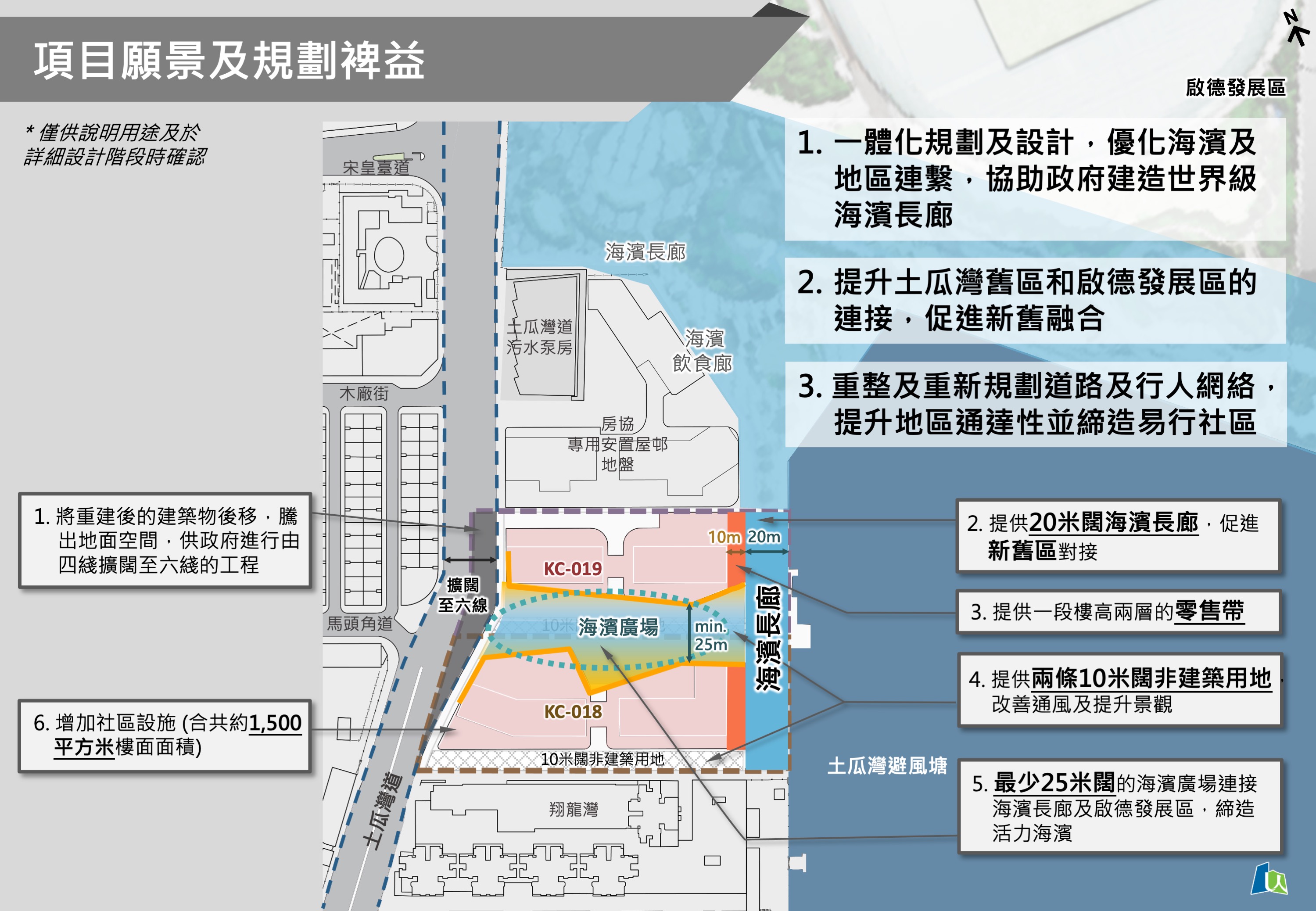 由於两个项目位处策略性的海滨地点,市建局在为该地区进行规划研究时,已将政府优化海滨环境的规划愿景,一并纳入考虑。