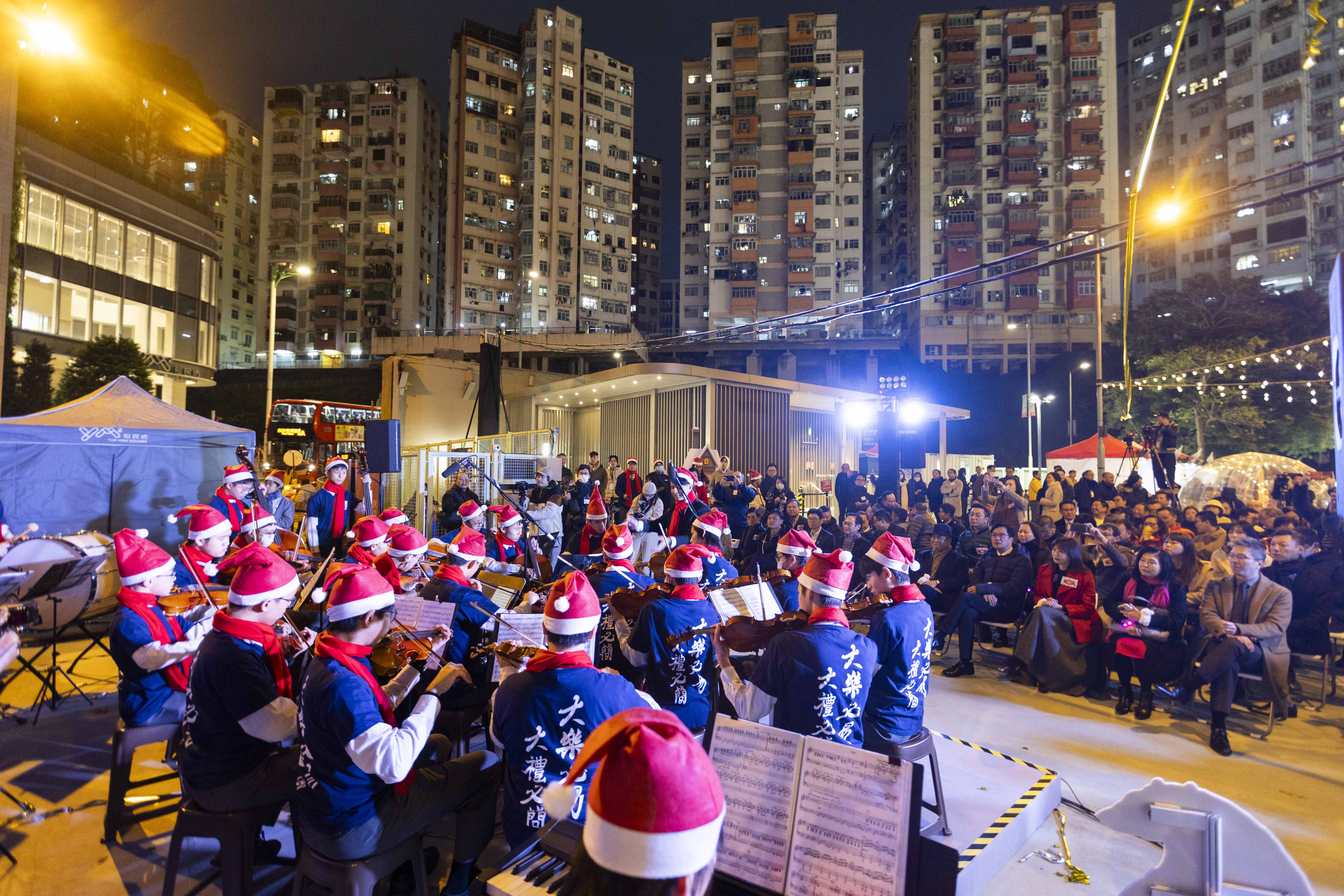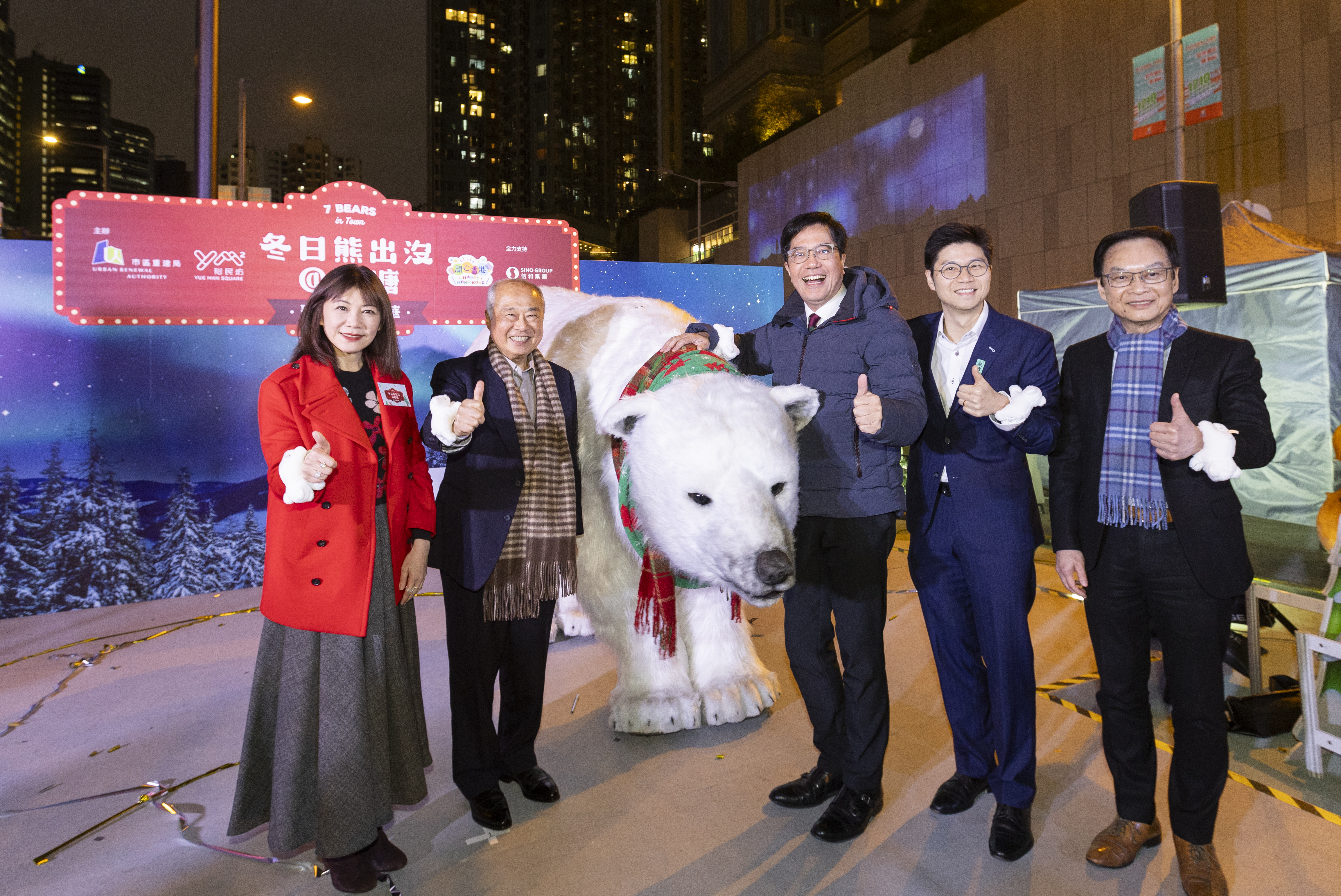 典礼由香港特别行政区财政司副司长黄伟纶作主礼嘉宾,在市建局主席周松岗、市建局行政总监韦志成、观塘民政事务专员何立基及信和集团资产管理董事蔡碧林陪同下主持亮灯仪式。各嘉宾一同欣赏巨型投影及长沙湾天主教英文中学管弦乐团的表演,并与「北极熊」合照。