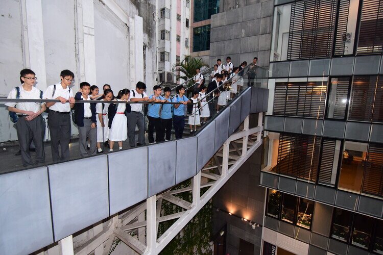 学生实地考察「茂萝街七号」,深入了解保育和活化历 史建筑的挑战。