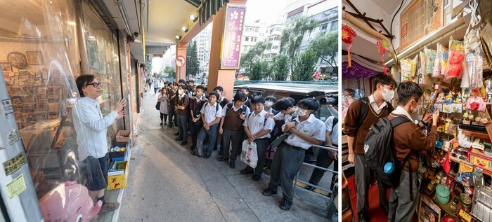 为进一步加深学生对深水埗区的了解,团队安排了学生在区内实地考察,进行访问和资料搜集,包括到访深水埗区的二手旧物店、人文艺术空间等特色店铺,发掘学生平日少有接触到的商户、地区文化和生活故事,启发他们创作微型艺术作品的灵感,将不同的深水埗故事融入到作品之中。