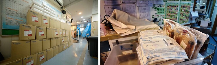 洗肾中心在升降机停用期间,尽用每寸空间存放大量消耗品。