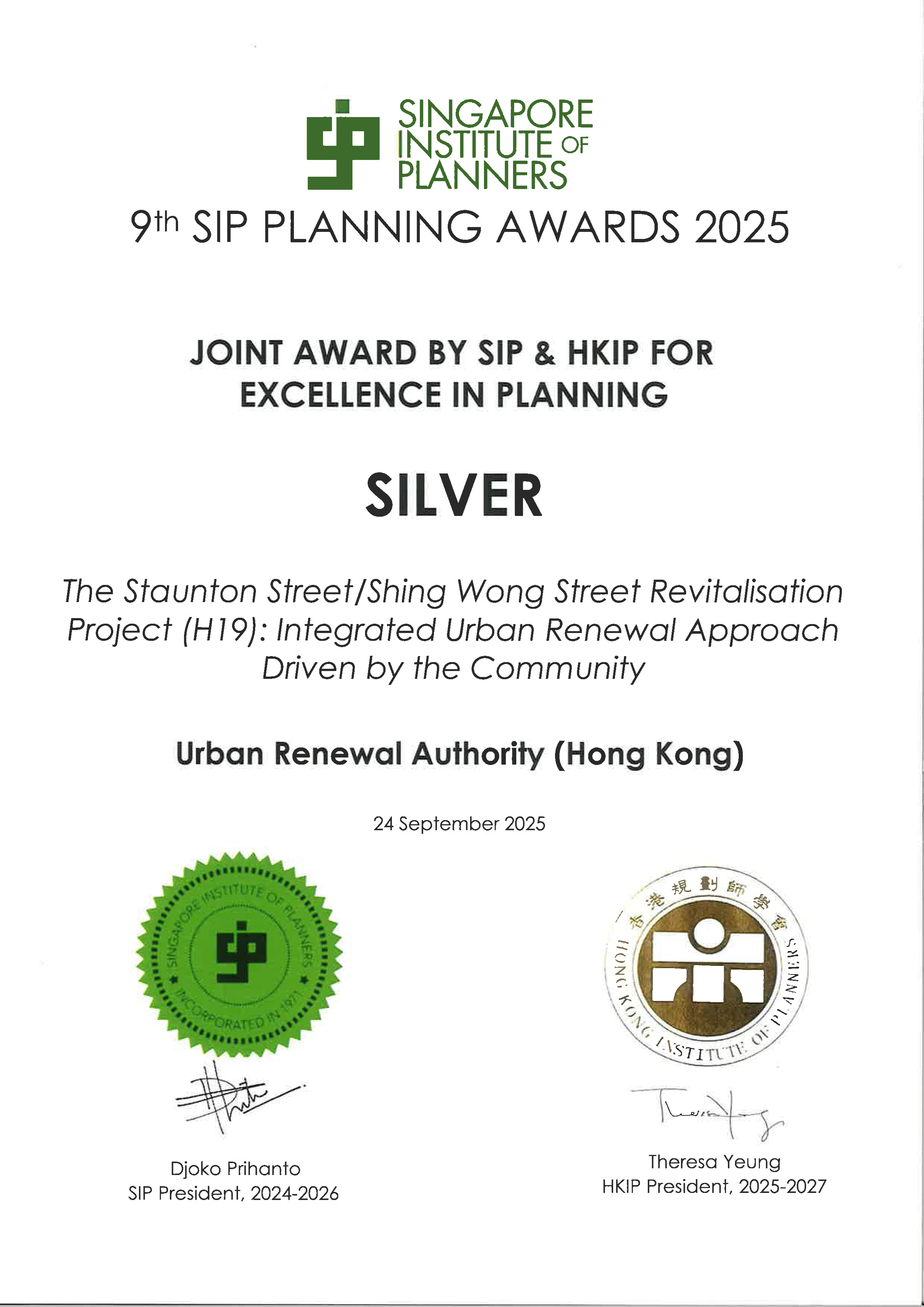 新加坡規劃師學會 及 香港規劃師學會卓越規劃大獎