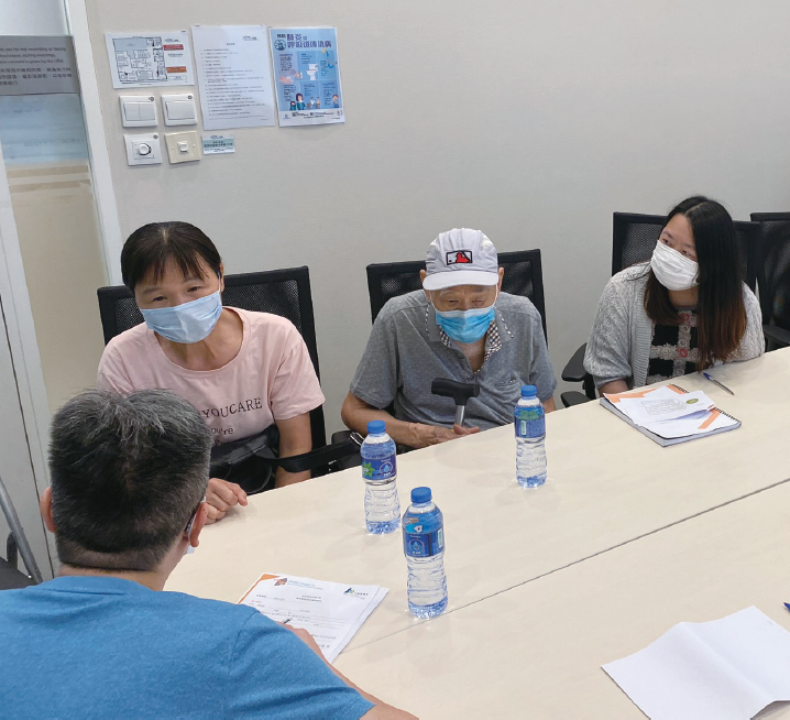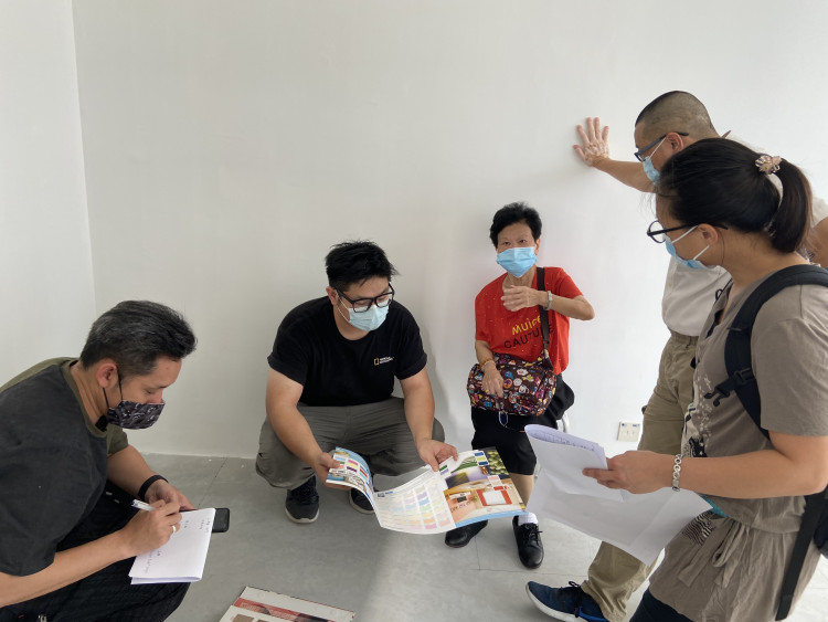 在設計及裝修前,團隊與黃婆婆(中)一起到新居視察,並 細心聆聽她的起居需要。