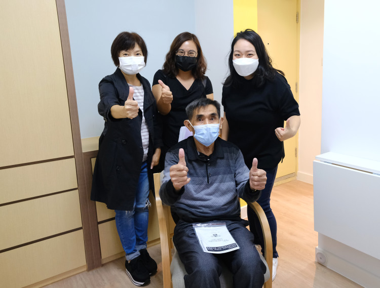 蔡伯伯(前)感激整個 服務團隊對他的關顧, 入伙後更大讚「住得好 舒服」!