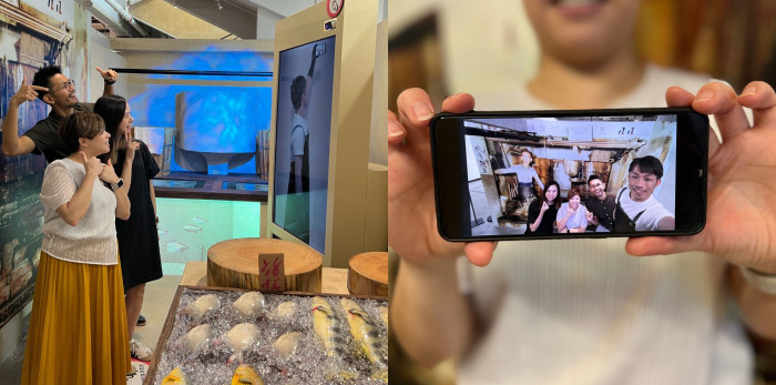 魚檔設置互動拍攝裝置,參觀者可以和「釗記號」新舊檔主「自拍」,留下有趣回憶。