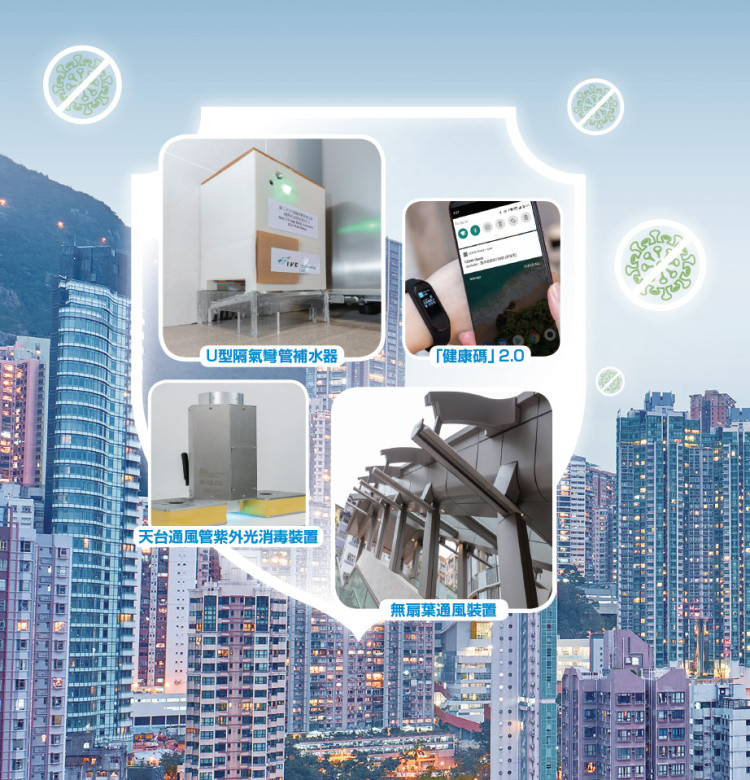 因此在不久將來,無扇葉通風裝置可為重建後的觀塘居民帶來更清新的空氣;天台通風管紫外光消毒裝置及U型隔氣彎管補水器,則猶如兩大護衛,守護屋宇喉管的衞生安全;感染風險提示程式「健康碼」2.0,會提醒市建局職員遠離疫廈,兼可展示職員的病毒檢測結果,進行凍結人口調查時令居民更安心。市建局期望這些創新科技,能造福不同階層,增加各行各業的抗疫力,並且推動社會以智慧科技應對未來挑戰,令市民生活得更安心更健康。