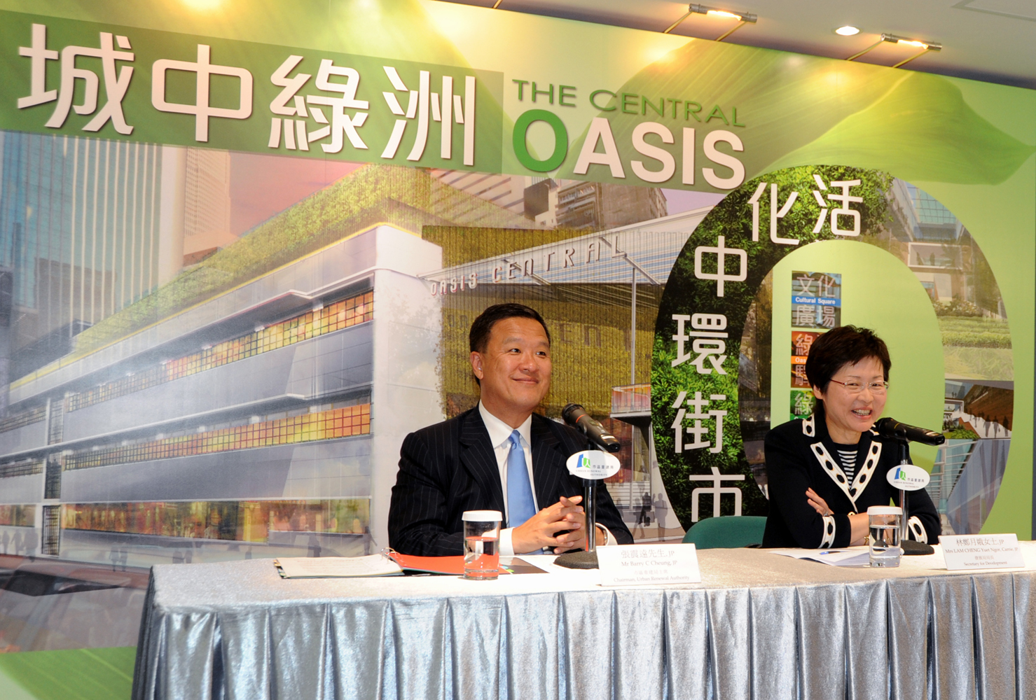 今日,發展局局長林鄭月娥與市建局主席張震遠向新聞界介紹活化中環街市的計劃詳情。