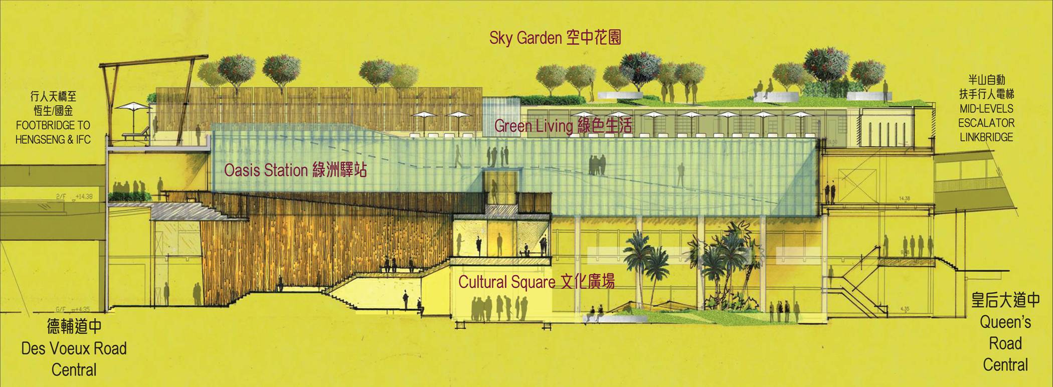 張震遠說:「中環是一個高密度的商業中心,有需要改善空氣質素。因此,市建局建議採用『城中綠洲』作為活化中環街巿的主題,為中環區引入更多綠色設施及消閒公共空間,令巿民特別是繁忙的中環上班人士,可以在一個舒適的環境下,享用多元化的設施,舒展身心。」
