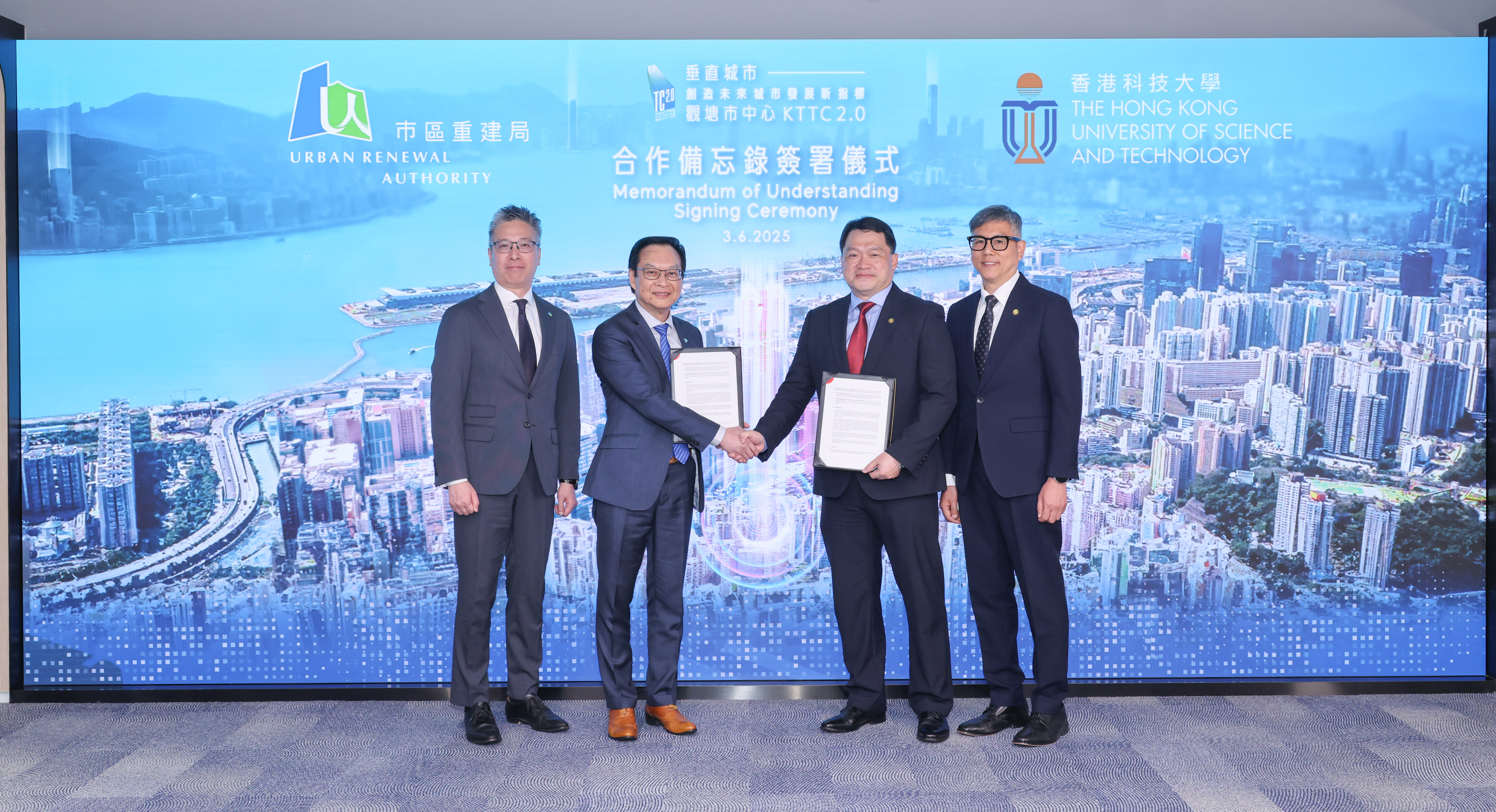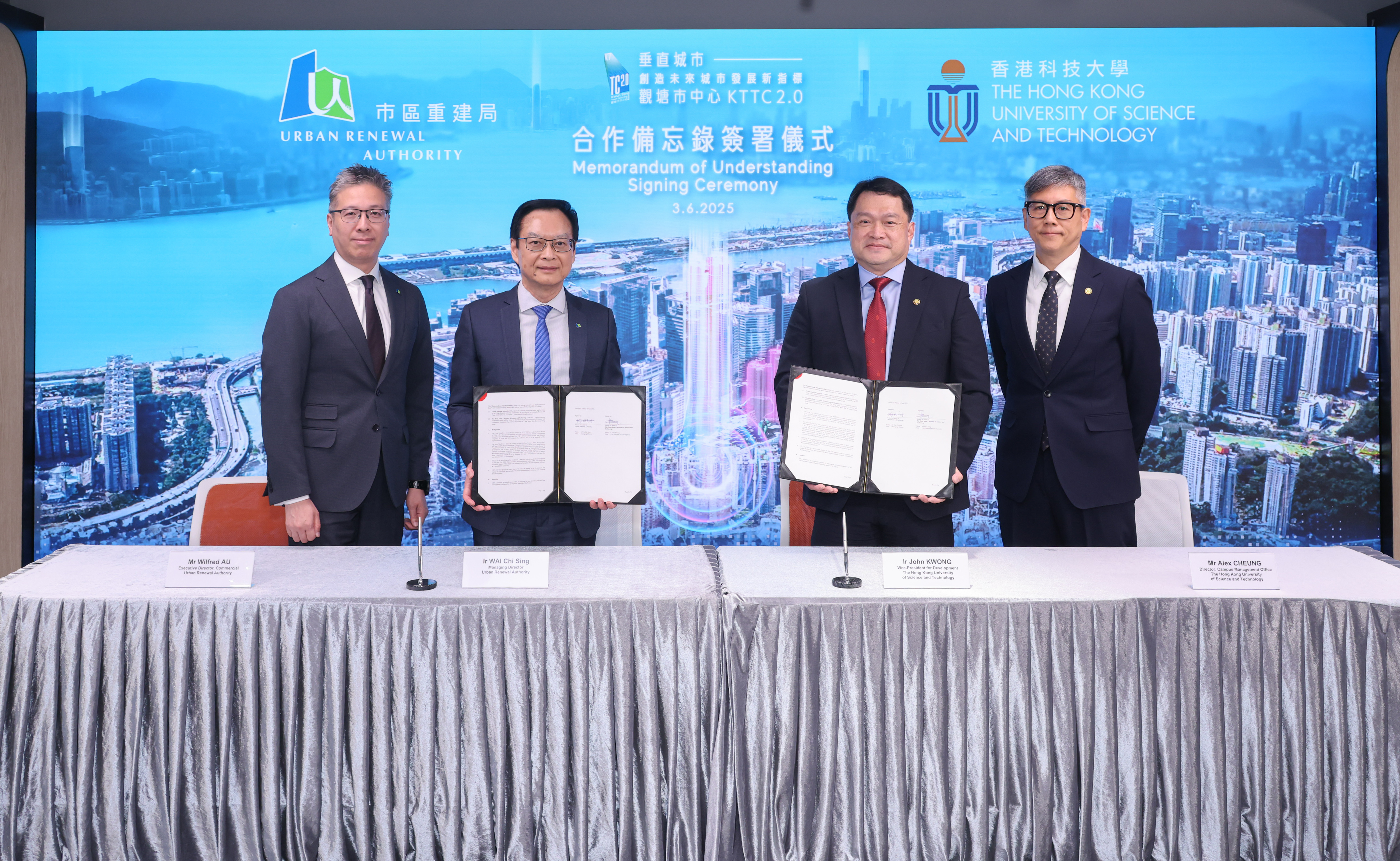 市區重建局(市建局)與香港科技大學(科大)今天(2025年6月3日)簽署合作備忘錄,就科大有意向在「觀塘市中心2.0」項目(「項目」)完成後,於項目內非住宅部分設立校外教研空間,確立合作意向及制訂框架。
