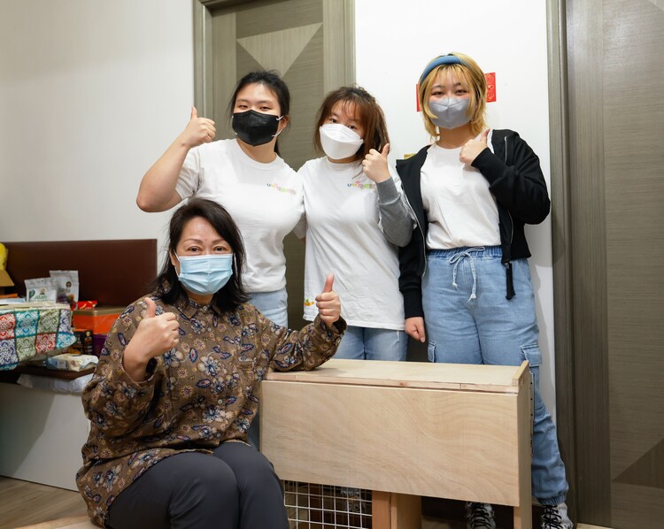 對於製作難度,另一義工杜向晴說,家具的榫位對接最考功夫,操作並不容易,還一度擔心摺疊枱的尺寸與設計圖紙有出入,可能擋住門口,阻礙出入,但見實物與環境完美結合,才感寬心,她亦對可迅速幫助李女士解決困擾多年的煩惱感到開心。