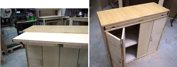 因應有關家庭的不同成員需要,義工們為她們製作了一張多功能組合枱,集餐桌、兩姐妹的書桌和收納儲物櫃,三個功能於一身。組合枱日常可以作為餐桌之用,亦可以拉出延伸桌面,變身成為學童書桌,而枱底更加設儲物櫃作收納,應付不同起居需要,令家具發揮到最大效用。